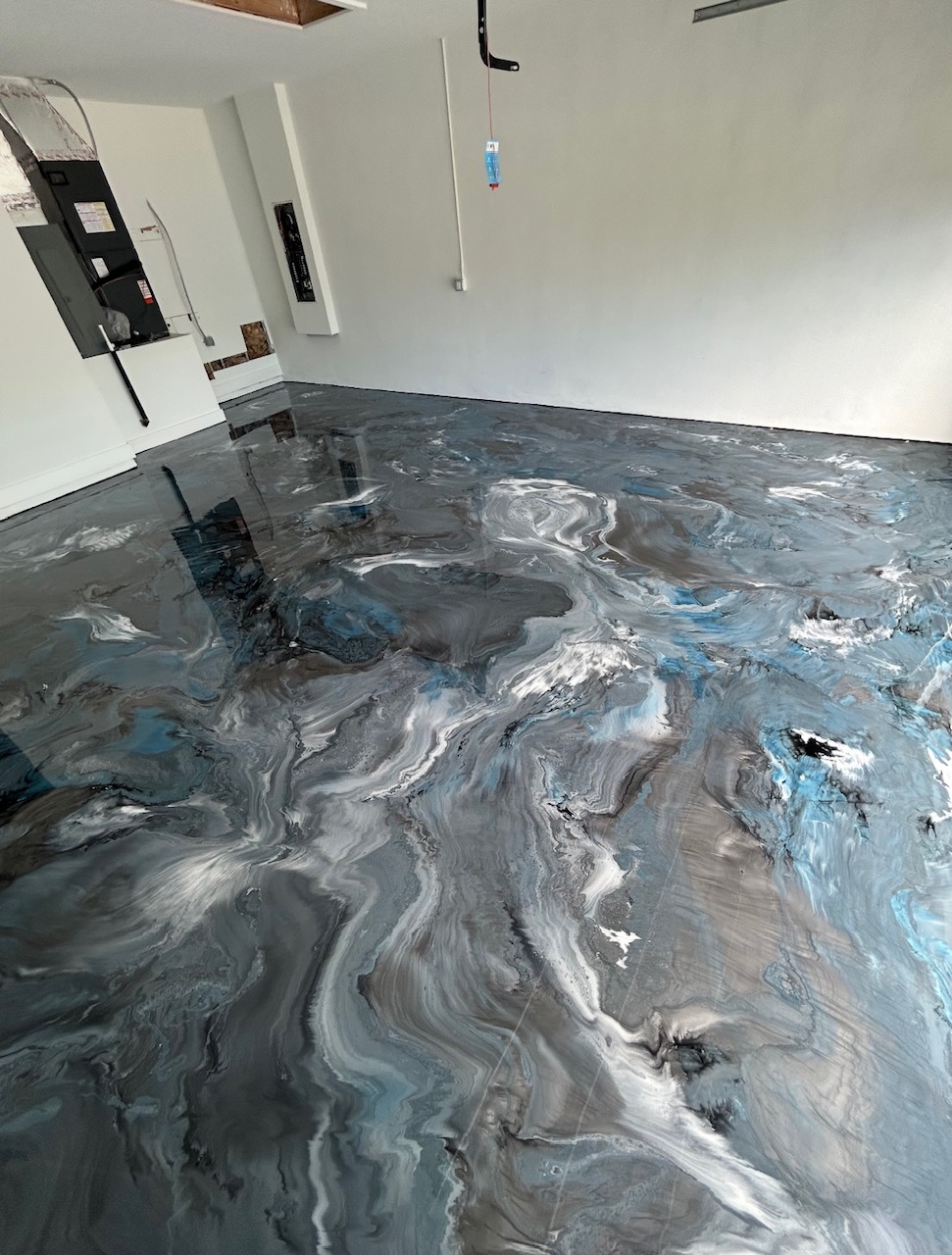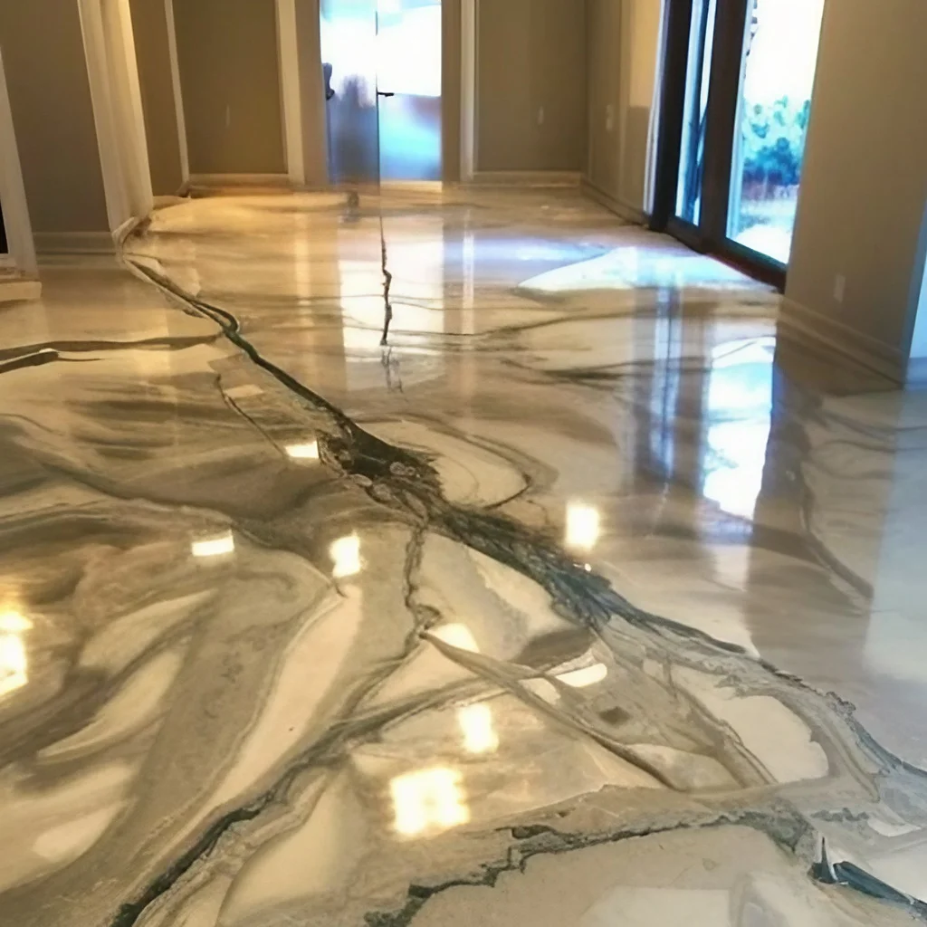 Add a touch of luxury with metallic epoxy coatings. These high-gloss, 3D-like finishes create a unique, modern look—perfect for showrooms, offices, and upscale homes.