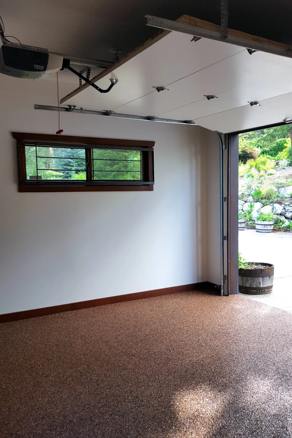 Transform your garage into a clean, durable, and stylish space with our flake epoxy systems. These floors resist cracks, stains, and hot tire transfer—while adding curb appeal and value to your home.